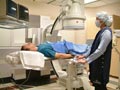 Se colocará por encima de usted un cilindro redondo o una caja rectangular que toma imágenes durante la fluoroscopia. El fluoroscopio se moverá por debajo de usted durante la prueba.