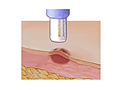 Una vez que se haya inyectado un anestésico local, se coloca sobre la lesión un pequeño instrumento afilado parecido a un cortador de galletas (sacabocados), se presiona hacia abajo y se gira lentamente para extraer una porción de piel circular. La muestra de piel se levanta con un instrumento que se llama fórceps o con una aguja, y se corta para desprenderla del tejido que hay debajo. Es posible que no se necesiten puntos de sutura para una muestra de piel pequeña. Si se toma una muestra de piel grande, es posible que se necesiten uno o dos puntos de sutura. Se aplica presión en el sitio hasta que el sangrado se detenga. A continuación, se cubre la llaga con una venda o un apósito estéril.