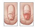La circuncisión masculina es una cirugía para extraer el prepucio, que es un pliegue de piel que cubre y protege la punta redondeada del pene. El prepucio da sensibilidad y lubricación al pene. Después de que se extirpa el prepucio, este no puede volver a colocarse. Vea una imagen del pene antes y después de la circuncisión.