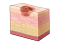 La cirugía para extraer (extirpar) un melanoma extrae el cáncer y un margen de tejido sano. En la imagen "Zona de la escisión":