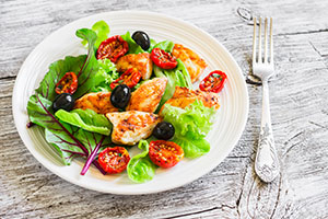 Elija alimentos con proteínas magras como aves, pescado, tofu, frijoles y cortes magros de carne.