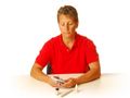 - No se apriete la yema del dedo. Si tiene problemas para sacar una gota de sangre del tamaño necesario para cubrir la zona de prueba de la tira, deje colgar la mano hacia abajo y cuente hasta 5. Después apriétese el dedo partiendo de la base y avanzando hacia la punta.