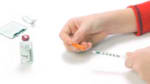 - Golpee el tambor de la jeringuilla para que las burbujas de aire atrapadas se desplacen hacia la zona de la aguja. Vuelva a introducir las burbujas de aire en el frasco. Importante: Asegúrese de que tiene el número correcto de unidades de insulina en la jeringuilla.