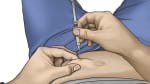 - Doble la muñeca e introduzca rápidamente la aguja completamente en el pliegue de piel.