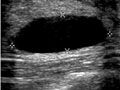 - Presencia de un saco lleno de líquido ( quiste). Un bulto lleno de líquido que tiene una forma pareja y que no tiene partículas flotantes probablemente es un quiste simple. Es posible que no necesite más pruebas. Vea una imagen de ecografía de un quiste simple de seno.