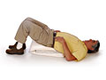 - Recuéstese boca arriba. Asegúrese de que el tórax se encuentre en una posición más baja que las caderas. Coloque dos almohadas bajo las caderas. Use una almohada pequeña debajo de la cabeza. Mantenga los brazos a los lados.
