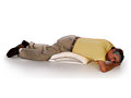 - Coloque dos o tres almohadas debajo de las caderas. Use una almohada pequeña debajo de la cabeza. Asegúrese de tener el pecho más bajo que las caderas. Use la respiración abdominal. Después de 5 o 10 minutos, cambie de lado.