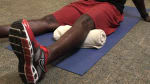 - Eleve la rodilla mientras se aplica hielo o cuando esté sentado o acostado.