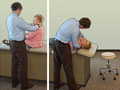 - El médico finalmente le ayuda a volver a sentarse en forma erguida.