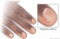 - A menudo, aparecen pequeñas marcas blancas (leuconiquia) después de lesiones menores. Es posible que duren semanas o meses y, por lo general, desaparecen por sí solas.