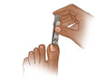 - Córtese una uña rota o desprendida, y colóquese una cinta sobre la uña para mantenerla en su lugar.