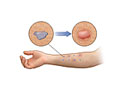 - Le pinchará la piel con una aguja debajo de cada gota. La aguja pasa a través de la gota y permite que parte del alérgeno penetre la piel. Para la intradermorreacción, se usa una aguja para inyectar la solución de alérgeno a más profundidad en la piel.