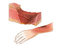 Las quemaduras lesionan las capas de la piel y también pueden lesionar otras partes del cuerpo, como los músculos, los vasos sanguíneos, los nervios, los pulmones y los ojos. Las quemaduras se definen como de primer, segundo, tercer o cuarto grado, según la cantidad de capas de piel y de tejido que se hayan quemado. Cuanto más profunda sea la quemadura y cuanto más grande sea el área de la quemadura, más grave será la quemadura.