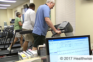 Montar una bicicleta fija, caminar en una cinta y entrenamiento de resistencia (ejercicios con pesas) son los tipos de ejercicio que puede hacer durante un programa de rehabilitación cardíaca.