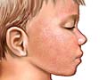 - Salpullido leve que comienza en la cara y se propaga al cuello, al pecho y al resto del cuerpo.