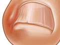 - Cuando la uña encarnada esté sanando, usar zapatos o sandalias (chanclas) cómodos que no le presionen el dedo del pie.